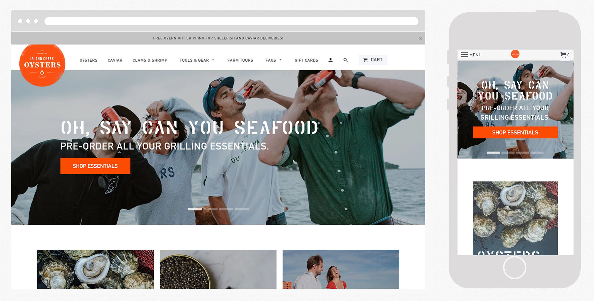 When I started working with Island Creek Oysters one of the first (of several) projects I worked on was designing a new store front for their booming eccomerce business. Shopify was chosen as the transactional payment engine. This allowed me to focus more on designing the interface without the worry of payment and transaction security as well as features such as logged in state.